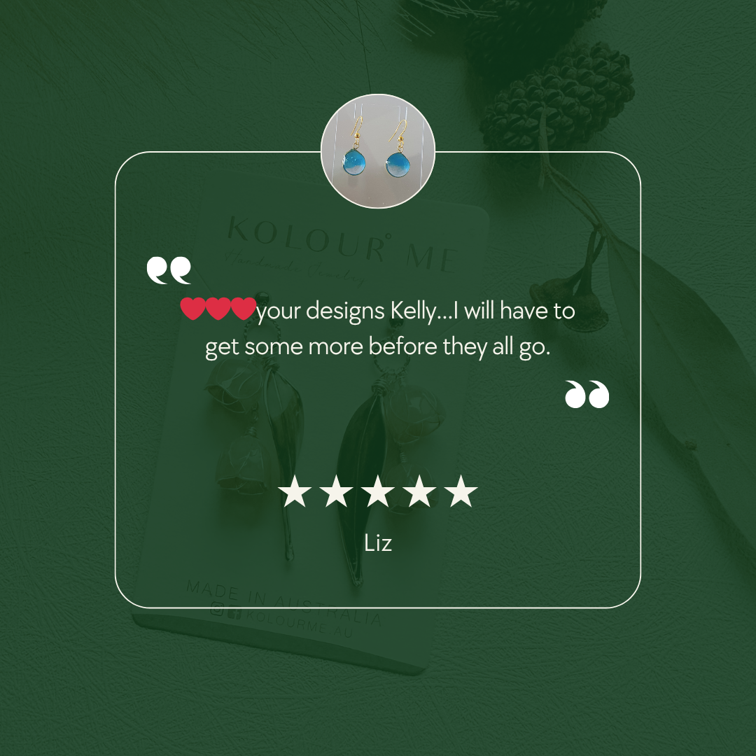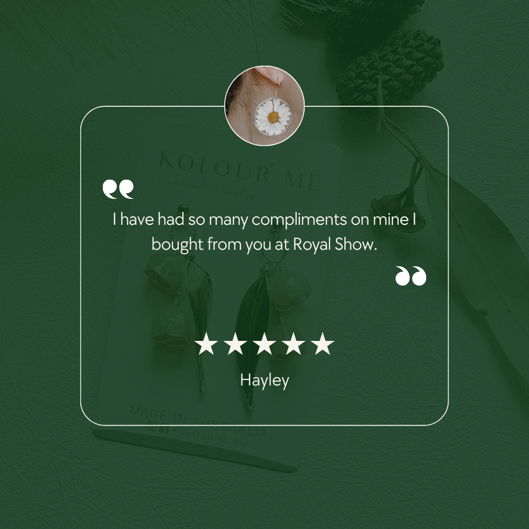 Hi, I’m Kelly — creator of Kolour Me, a jewellery brand inspired by the quiet beauty of nature. From my home studio in Western Australia, I handcraft pieces using pressed flowers, wire, and crystal-clear resin. Each design captures the light, delicacy, and stillness of nature—preserved as timeless, wearable art.