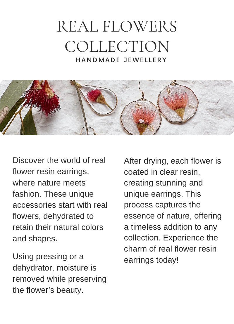 As my creativity blossomed, I started incorporating other materials like resin, wire and dried flowers, resulting in unique and captivating designs. I strive to capture the natural beauty of our surroundings, often using pressed flowers and natural freshwater pearls into my wearable art jewellery.